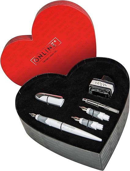 Online Kalligrafie Set In Herzbox I Schonschreibfuller Air Weiss I Kalligrafie Federn In 3 Strichstarken 0 8 1 4 1 8 Mm I Konverter I Tintenglas Schwarz I Geschenkset Fur Kalligraphie Fans Amazon De Burobedarf Schreibwaren