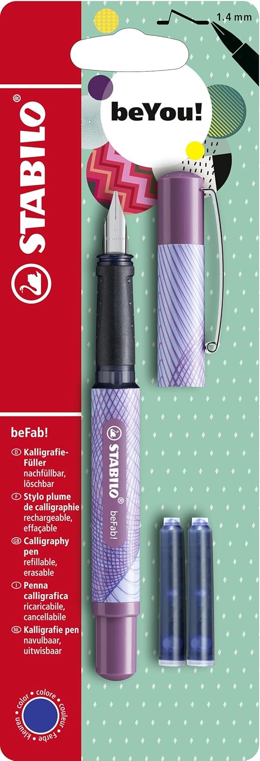 Amazon Com Stabilo Befab Calligraphy Fountain Pen With 3 Blue Ink Cartridges Blue