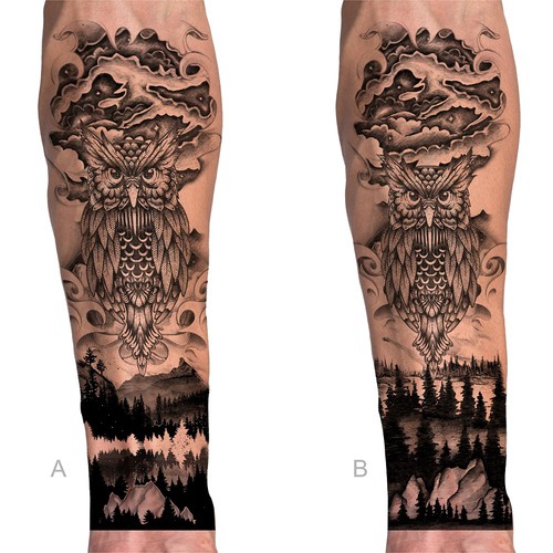 Traditional American Style Comic Tattoo Forearm Black Grey Dark Owl Tattoo Contest 99designs