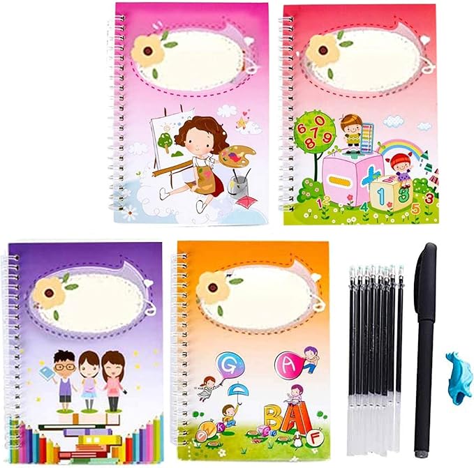 Mosstars Magische Kalligraphie Copybook 4 Stuck 1 Stift 1 Stifthalter 8 Nachfullung Regular Handwriting Practice Wiederverwendbare Handschrift Copybook Set Fur Kinder Grundschule Studenten Amazon De Bekleidung