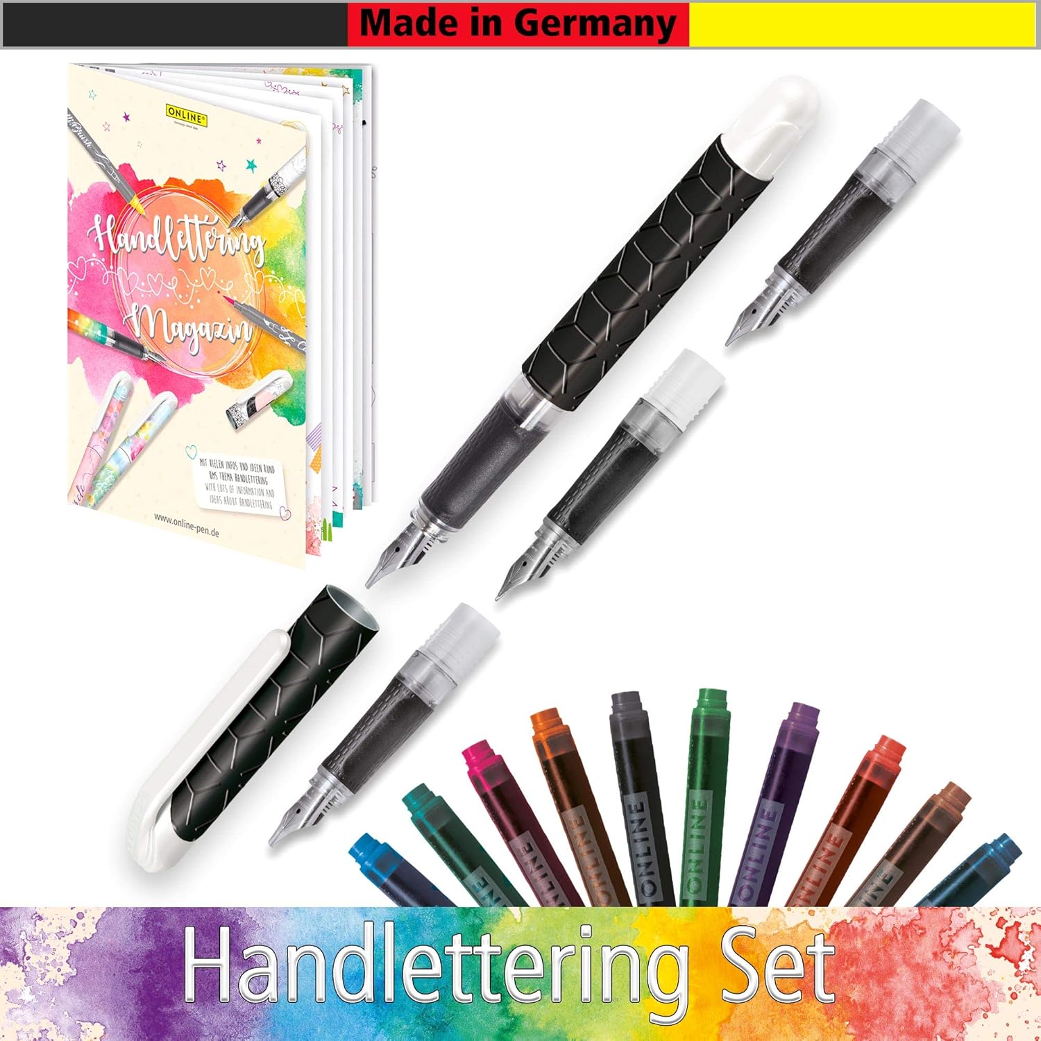 Online Handlettering 2 Go Schonschreib Set Inkl 1 4 Mm Kalligraphie Fuller Drei Federstarken 10 Kombi Patronen In Verschiedenen Farben Inkl Booklet Mit Ubungen Magazin Be Happy Amazon De Burobedarf Schreibwaren