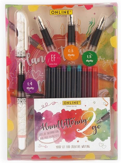 Online Handlettering 2 Go Schonschreib Set Inkl 1 4 Mm Kalligraphie Fuller Drei Federstarken 10 Kombi Patronen In Verschiedenen Farben Inkl Booklet Mit Ubungen Magazin Be Happy Amazon De Burobedarf Schreibwaren
